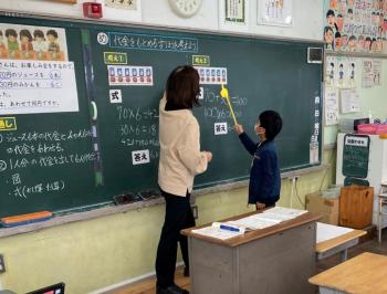 学び深まる秋 今日も学校内で、学びの秋を見つけました。今日は、3年生の算数の授業です。べつべつに考える方法と、いっしょに考える方法で、計算をし答えをもとめ…