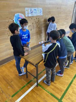 わくわくおもちゃランド! 昨日、2年生は生活科の学習で、体育館に1年生をむかえ、楽しい出店活動をしていました。”わくわくおもちゃランド!”です。とても楽しそうな活動で…