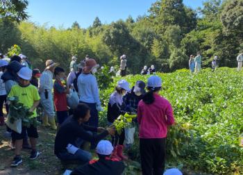 大豆の収穫 今日も天気のよい一日です。今日、5年生は大豆の収穫にいきました。地域の方、JAの方に育てていただいた大豆を収穫させていただきました。一粒一粒…
