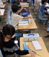 はじめが肝心です! 今日の天気は薄曇りで肌寒く感じます。体調管理が難しい季節になりました。さて、今日一年生の教室では、絵の具道具の使い方の学習が行われていました…