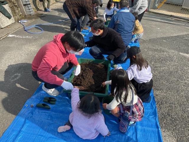 「はないく」しましょう! 大野中学校区青少年健全育成協議会主催、大野地区自治協議会子育て部会の皆様の協力で、本年度2回目の「はないく」運動を行いました。