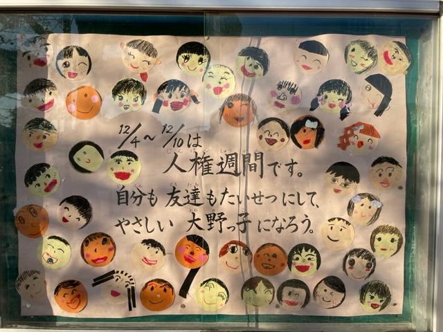 自分も友達もたいせつにして、やさしい大野っ子になろう。 12月4日から10日までは、人権週間です。本校でもこの期間に合わせて人権について考える機会を多く設け、水曜日には「人権集会」をオンラインにて…