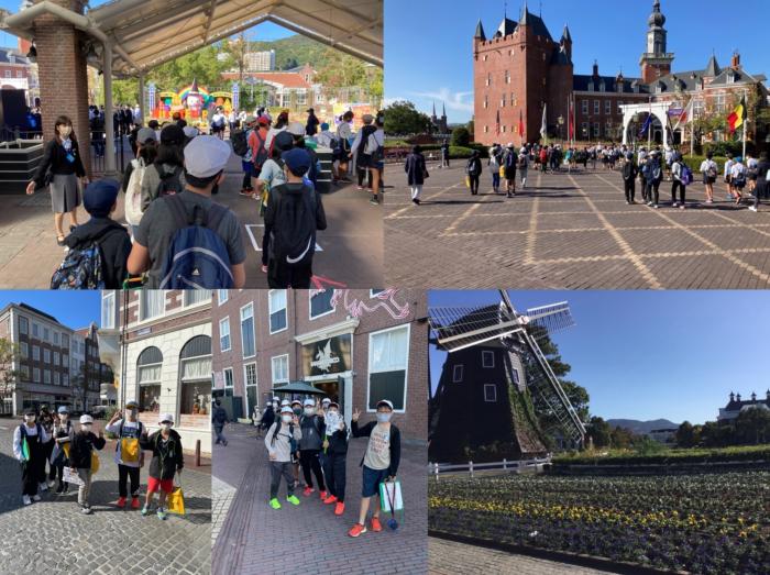 楽しい思い出ができました! 修学旅行2日目、長崎市よりハウステンボスへ移動し、絶好の天気の下で楽しい思い出をたくさん作った6年生です。