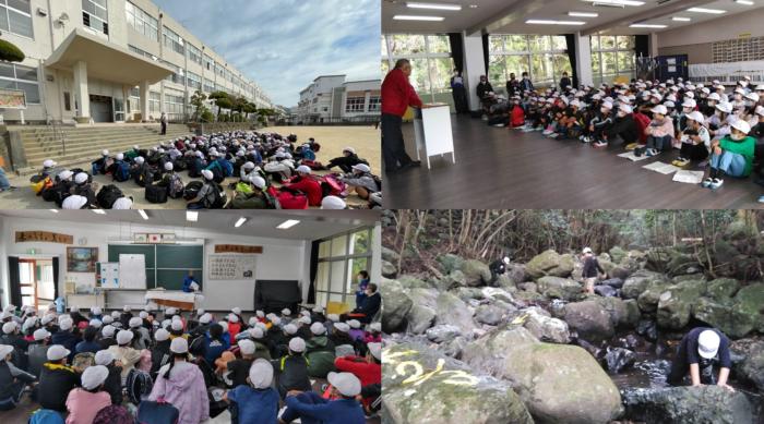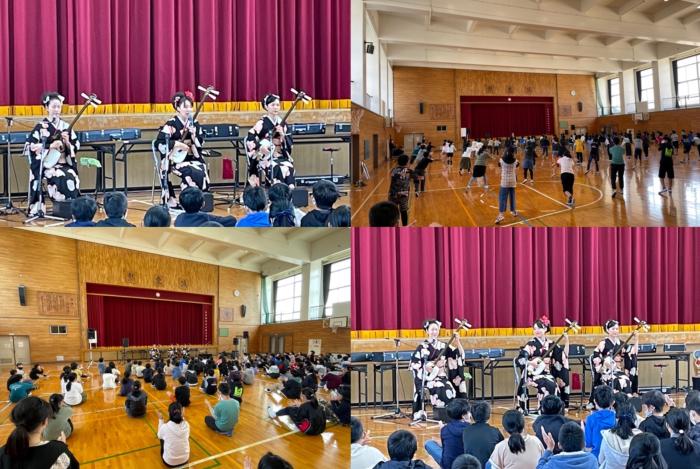 三味線の音色に酔いしれて 県教職員互助組合及び佐世保市教育委員会主催の村上三絃道「津軽三味線スクールコンサート」が本校体育館で本日行われました。コロナ禍で、密を避ける…