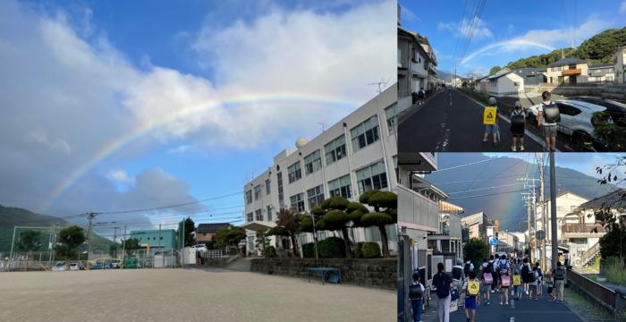 とってもきれいでした! 朝、登校時に虹が出ていました。登校している子供たちが嬉しそうに教えてくれました。虹の下まできれいに見え、虹に向かって登校しているようでした。…