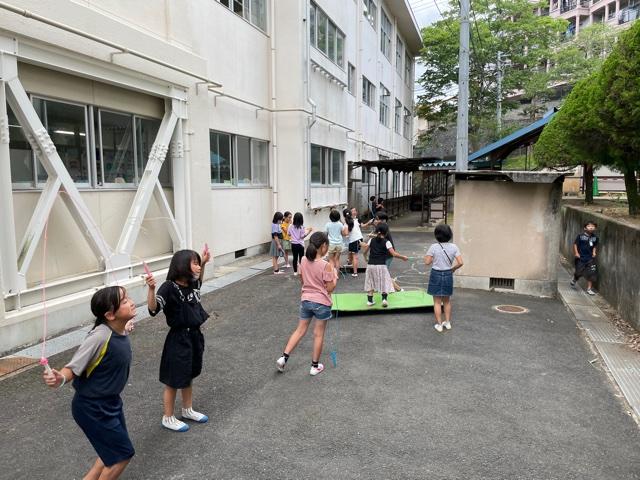 はやぶさ跳び 大野小2校舎と3校舎の間を「縄跳び広場」と呼び、子供たちは休み時間ごとに練習を重ねています。「はやぶさ跳び」って御存知ですか?あや跳びの二重…