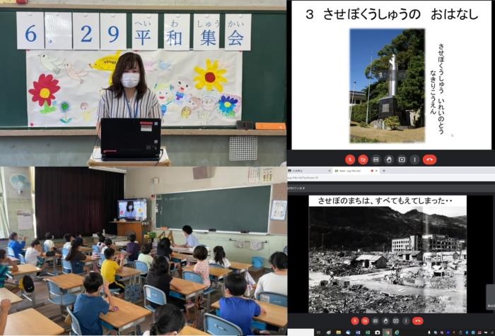 花でかざって(6.29 平和集会) 今から76年前の今日6月29日は、佐世保大空襲があった日です。当時の人の苦しみや悲しみに共感し、戦争の悲惨さや平和の尊さについて考える平和集…