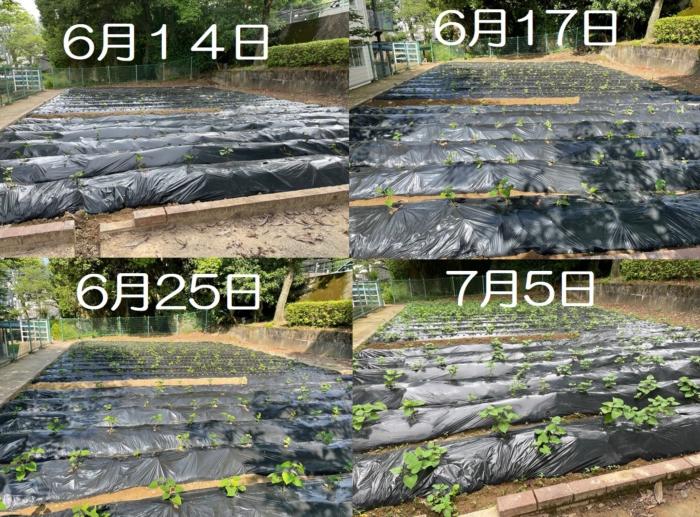 日々少しずつ 6月上旬にイモさしを生活科の学習として2年生がしました。学校管理員の石田さんが準備をしてくださり、2年生それぞれの学級で一生懸命にイモさしを…