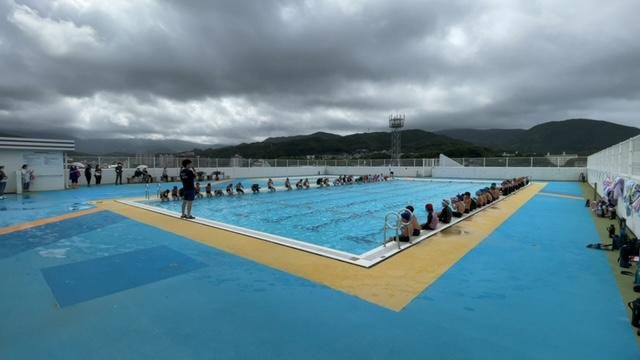 曇り空の下ですが・・・。 今週は、水泳参観Weekです。天気が心配される今週ですが、昨日も今日も曇り空の下ですが、無事に行うことができています。
