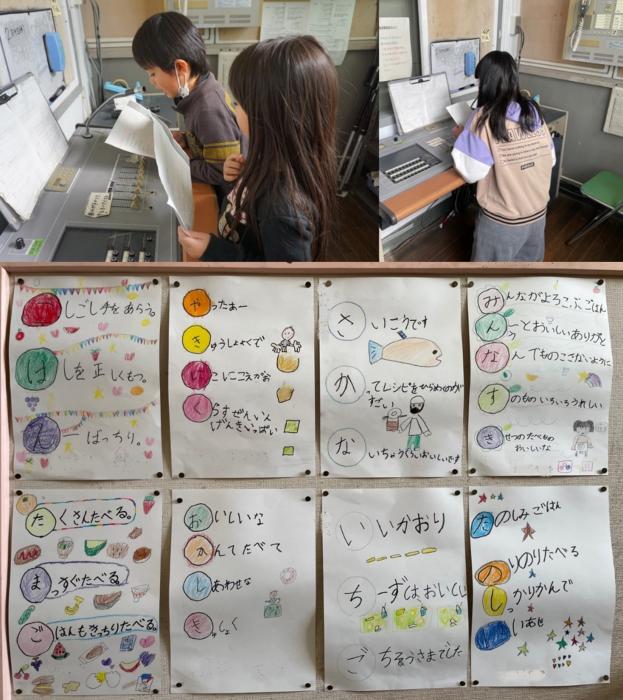 や・き・に・く 先週の給食週間の取組で、給食調理士さんや給食に携わる方への感謝などを各学年の実態に応じた手紙などにまとめました。そして、学年ごとに給食時間に…