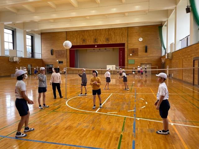 みんなで協力して! 5年生の体育で、「ソフトミニバレーボール」に取り組んでいます。