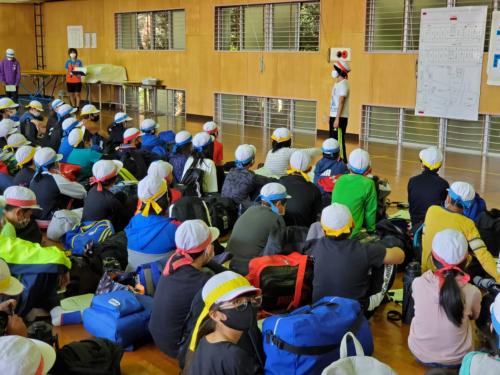 現在入所式を終え、館内での過ごし方やルールを確認し、午後の「沢のぼり」に備えています。