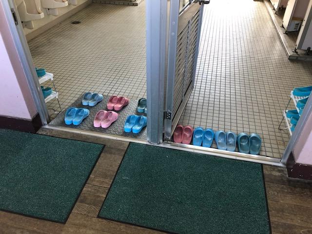 いつもこうではありません・・・。 大野小学校には、10箇所トイレがあります。その入口にはスリッパが準備してあります。トイレのスリッパは、写真のようにいつもきちんと並んではいま…