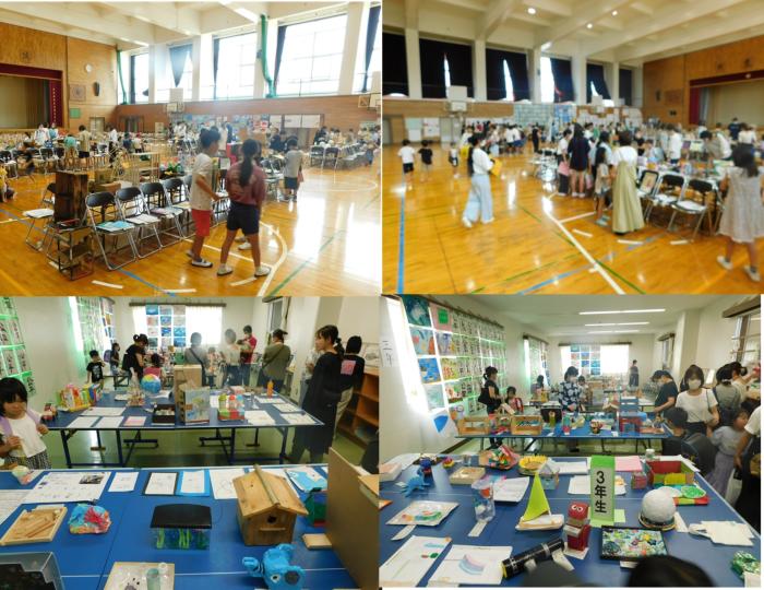 夏休み作品展 今日から7日までは、校内夏休み作品展です。今年度は、久しぶりに体育館に作品を集めて行いました。展示の都合上、小アリーナと体育館フロアに分けて…