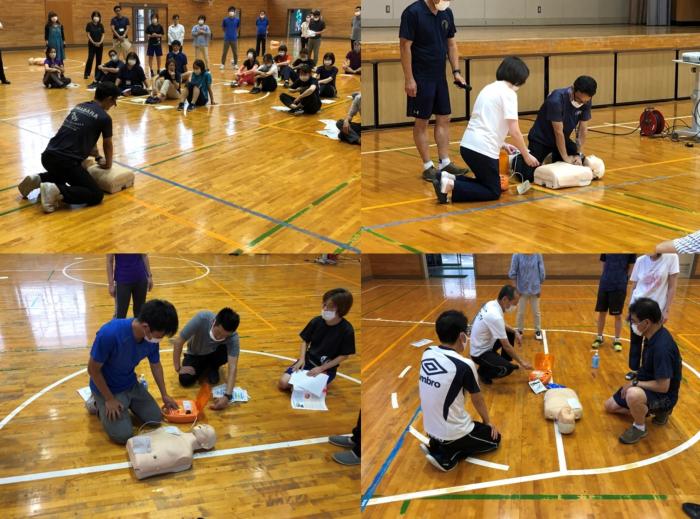 万が一に備えて 来週からの水泳指導が始まるのを受け、教職員全員で心肺蘇生(心臓マッサージ・AED使用)の研修を行いました。