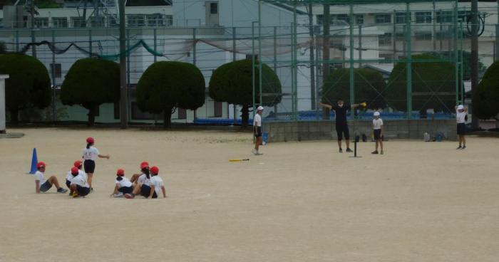 2学期も元気に学習 2学期がスタートし、3日目。学校生活のリズムをすっかりともどし、子どもたちは元気に活動しています。今日は運動場で4年生がベースボール型ゲーム…