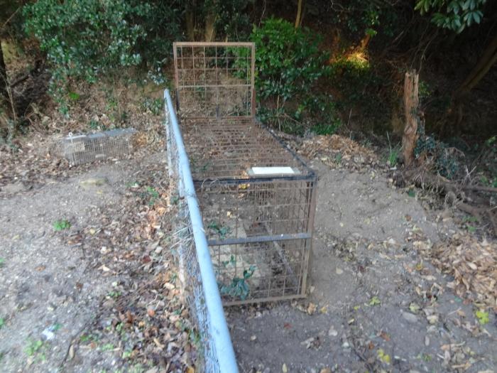 学習? 大崎分校の裏の山には、よくイノシシがやってきています。昨年度まではよくイノシシが罠にかかっていました。今年は、イノシシが罠の仕組みを学習した…