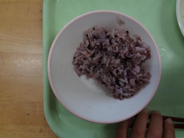 給食 今日の給食は、黒米ご飯、牛乳、すまし汁、いわしみぞれ煮、浦上そぼろでした。黒米ごはんは、なじみはありませんでしたが、もちもちして、子どもたち…