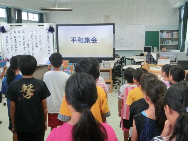 登校日(平和集会) 今日は、登校日で、全員登校できました。途中具合が悪くなった子もいましたが、大崎分校に子どもの声が響いたことがうれしかったです。そして図書室で…