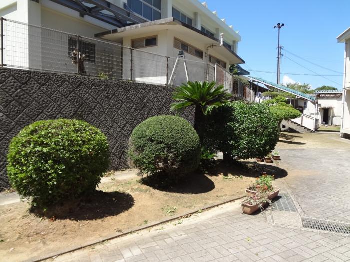 学校美化作業 今日は、市内の管理員の方々が大崎分校の庭木の剪定作業や除草作業に来てくれました。校門や職員室側入り口等の草木が見違えるほどきれいになりました…