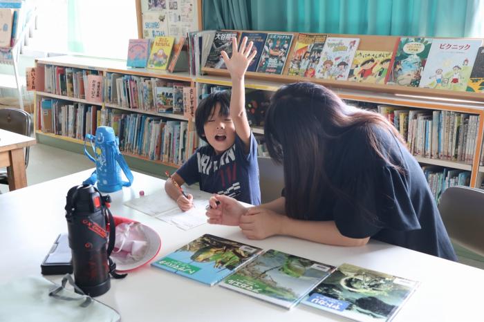 放課後の見守りA 2学期が始まり、水曜日の「放課後の見守り」もスタートしました。6日は委員会の日でしたが、委員会の作業を手伝ったり、見守られながら学習(宿題…