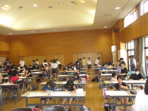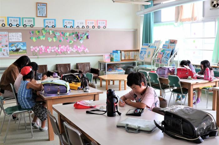 放課後の見守りB 2学期が始まり、毎週水曜日は放課後子ども教室の見守りが行われています。2学期に入って2回目ですが、今日は5名の子供たちが真剣に?楽しく宿題…