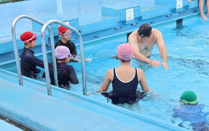 泳ぎが上手くなったね! 今年は市の「体育の専門家派遣事業」の他に、コミュニティスクールの地域学校協働活動として、若葉龍神町内会会長の山口さんに、今週3回(1回は雨…