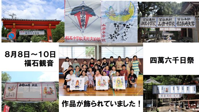 地域のために…! 台風が心配されますが、4年ぶりに開催されている校区にある福石観音の千日祭(8月8日・9日・10日)。潮見小・山澄中の児童生徒が描いた可愛ら…