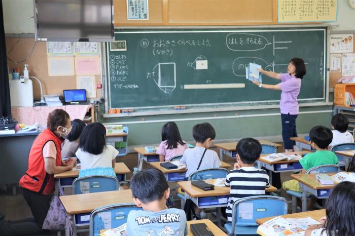 1年生の学習支援 1学期の途中から、見守り隊の方に1年生の学習支援に入ってもらっています。学習支援と言っても、そばについて集中できるよう声かけをしたり、聞き…