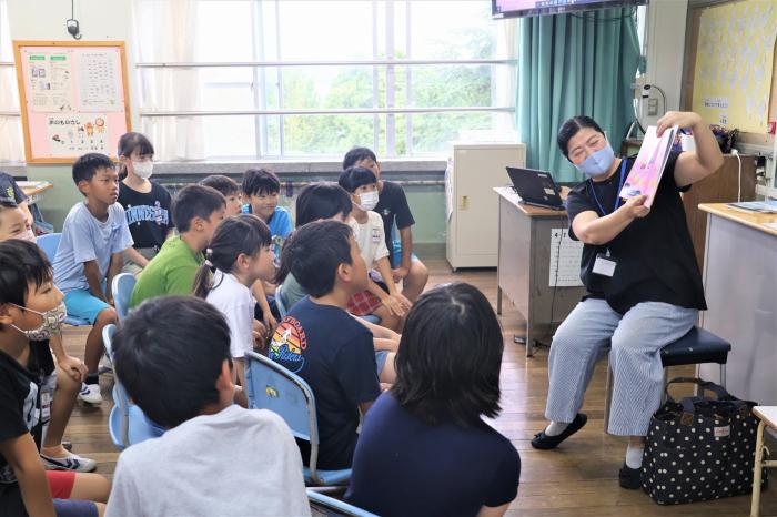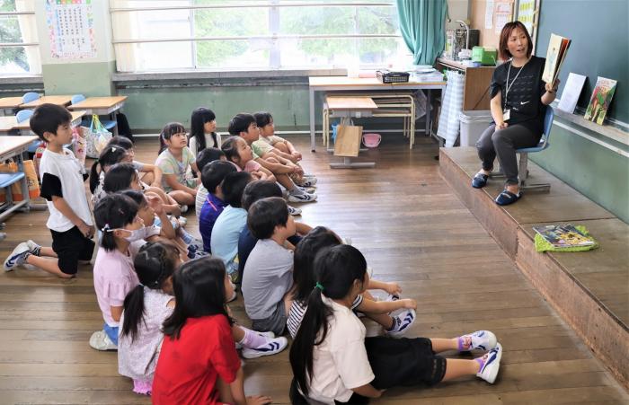 2学期の読み聞かせがスタート! 今週から2学期の読み聞かせがスタートしました。まず、1・2年生です。1年生は、英語での読み聞かせ。分かりやすい絵の指差しと英単語の組み合わ…