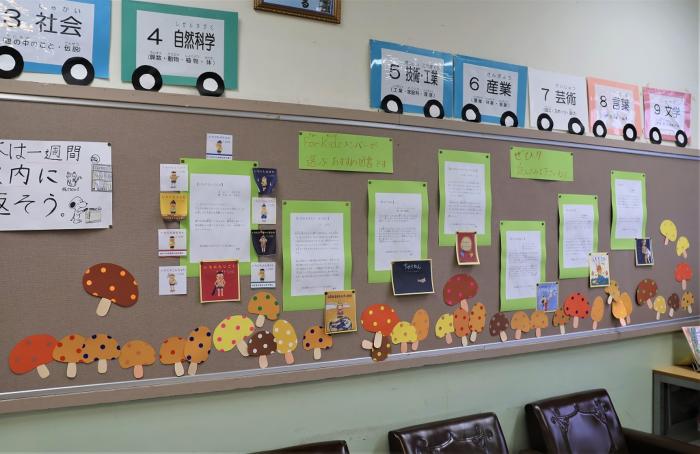 9月の図書室 新学期が始まり、9月の図書室の飾りを図書ボランティアの方が作製されました。6月から毎月作ってくだり、子供たちの目を楽しませてくれています。…