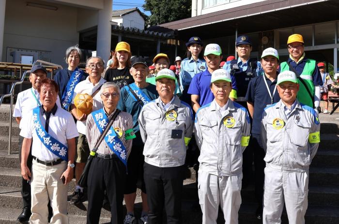 九電の呼びかけで、警察・防犯協会・地域の公民館長・民生委員さん方、総勢15名の方々が来られました。年に1回ではありますが、長年続いている活動です。地域ごと、子供たちに寄り添って一緒に下校をしていただきました。