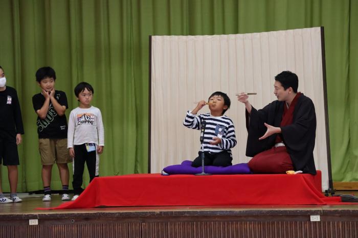 また、今回も学年代表が舞台に上がり、いろいろな所作を全校児童の前で披露してくれました。これも面白く想像力が広がっているように感じました。普段学級では見せない表現力を見せてくれるこもいました。