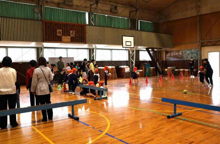 2校時が前半の部、中休みで3〜6年生は出店の担当が入れ替わります。そして、3校時が後半の部です。出店は、3年生が「えんにち」「宝さがし・めいろ」、4年生が「スポーツ大会」「クイズ・めいろ」、5年生が「宝探し・わらうのこらえて」、そして6年生が「人間まちがいさがし・おばけやしき」でした。ECOにも気を付け、短い準備の中で、園児も含めて、みんなが楽しめるよう工夫していました。