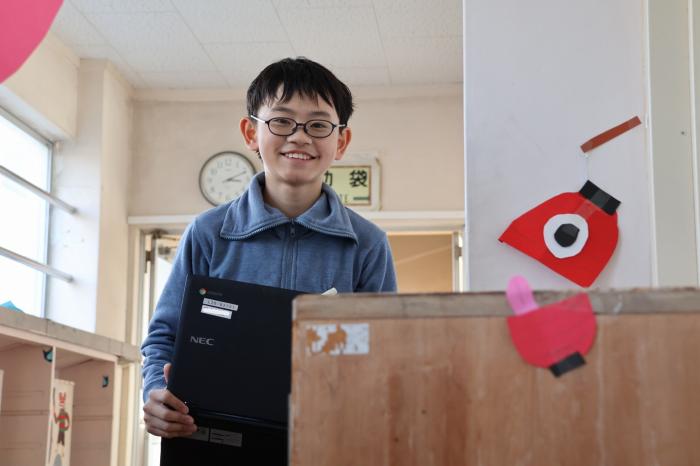 6年生が図工の時間に、校舎の階段や壁、廊下の段差や遠近を使って、ある特定の場所から見ると「物体」が浮かび上がるあるトリックアートに取り組んでいました。個人で、仲間と協力して…実際に見せてもらうと感心する作品ばかりでした。どうすれば、思ったとおりに見えるのか…端末を駆使し、計算しながら楽しんでいました。