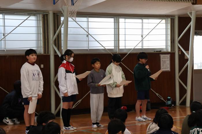 今日の潮見っ子タイムは、児童集会でした。内容は、保健委員会からの睡眠クイズと、英語スピーチコンテストに出場した児童の発表でした。