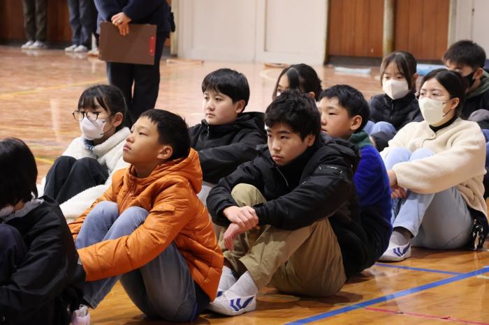 冷え込んだ朝でしたが、体育館で3学期始業式を実施しました。早く来た学級から最後全員が揃うまで静かに待つことができました。