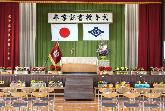 明日の卒業式に向けて、1〜5年生が午後から会場設営や校舎内を隅々まできれいにしました。6年生のために、みんな張り切っていました。