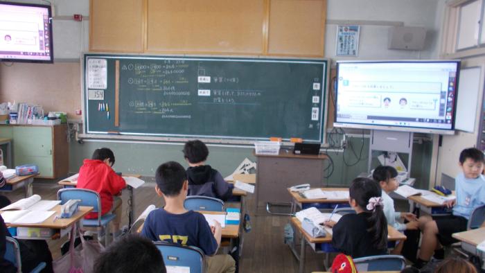 4年生の2時間目は算数の時間でした。3けた×3けたの計算にチャレンジしていました。自分なりにどのような計算のしかたで解けばよいのか、試行錯誤しながら解いている様子がとてもよかったと思います。