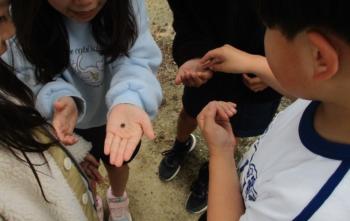 ダンゴムシ 3年生が初めての理科の学習に取り組んでいます。今日は、校庭で生き物を探していました。お目当てはダンゴムシです。簡単には見つからないだろうと…