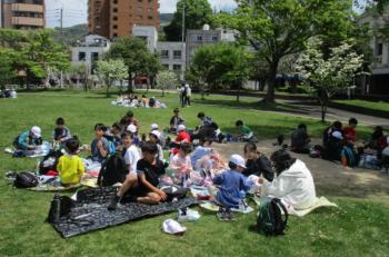 歓迎遠足 歓迎遠足を実施しました。1年生も6年生に手を引いてもらって、がんばって体育文化館横の新公園まで歩きました。6年生が1年生の世話を本当によく…