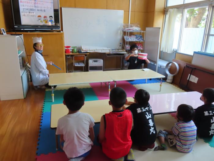 |  | プール開き プール開きを行いました。あいにくの雨で、公民館内での実施です。高島の海開きも兼ねているため。町の役員さんや保育所の子どもたちなども含めて行…