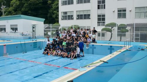 プールがきれいになりました! 雨で延期になっていたプール掃除を5・6年生のみなさんががっばってくれました。黒くこびりついていた汚れをしっかりこすり落として、とてもきれい…