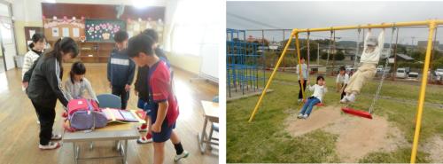 運動場ではお姉ちゃんたちが一緒に遊んでくれました。