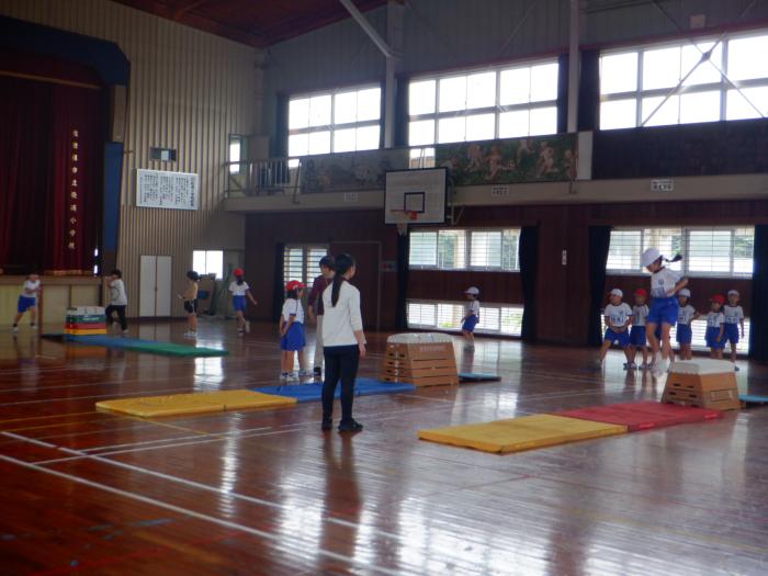 合同で跳び箱遊びをしたよ!【1・2年生】 今日の体育は1・2年生合同で跳び箱遊びです。