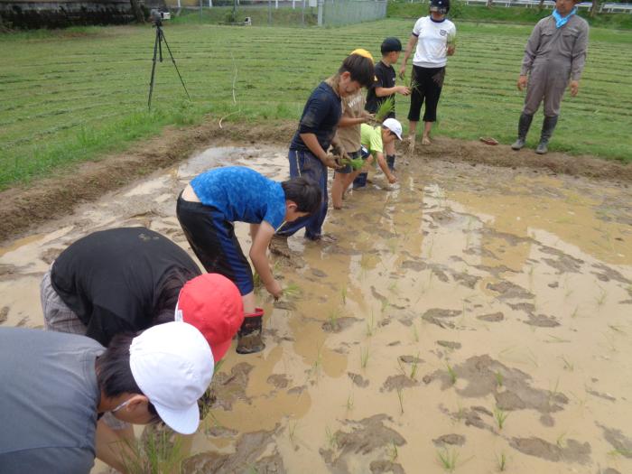 子供たちがもみ(タネ)から育てた苗を、いよいよ田んぼに植えるのです。…