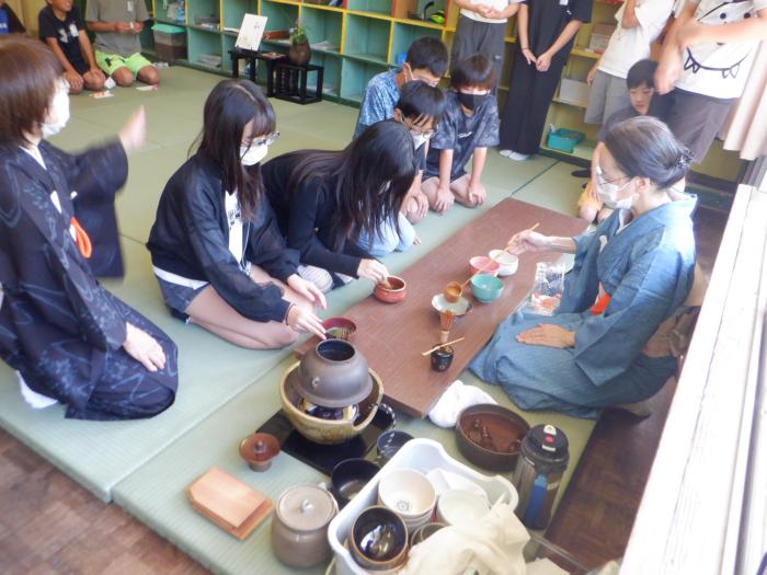 10/01 茶の湯体験【6年生】 今日は急にでしたが、6年生の子供たちが茶の湯体験をいたしました。