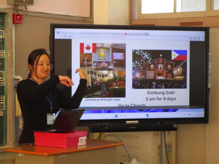 ALT授業〜クリスマスについて教えてもらいました 今日はALTのサマンサ先生が来る日でした。