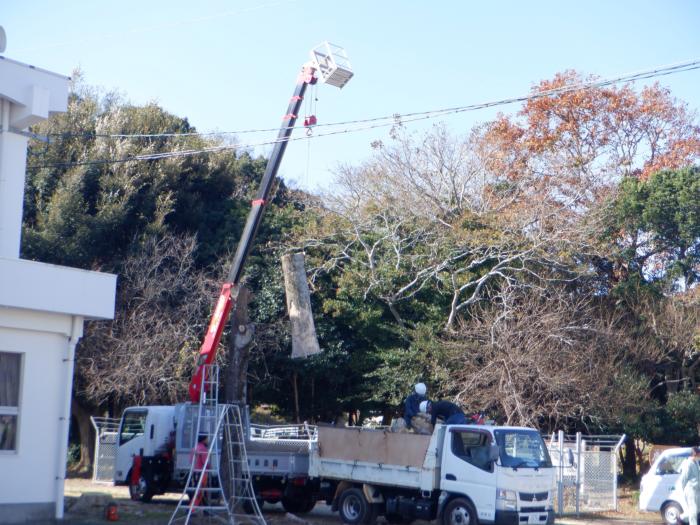 12/19 ユリノキの伐採 校舎の西側にユリノキが4本、大きくそびえていました。