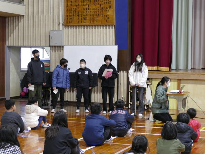 今日は朝から、給食委員会の子供たちが集会を開いてくれました。